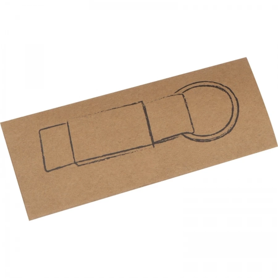 Brelok składający się z kolorowej taśmy i metalowej tabliczki.
