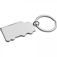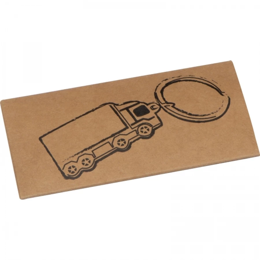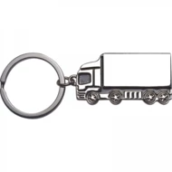 Brelok do kluczy z metalu o wysokim połysku, w kształcie ciężarówki.
