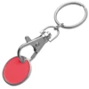 Metalowy brelok karabińczykiem i żetonem do wózka. Produkt dostępny w kilku kolorach.