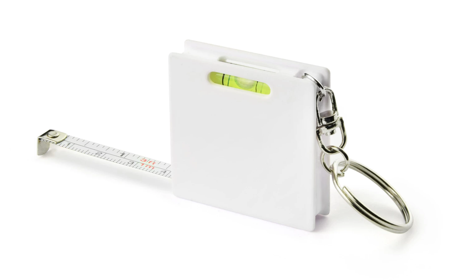 Breloczek do kluczy z miarką o długości 1 m i poziomicą.