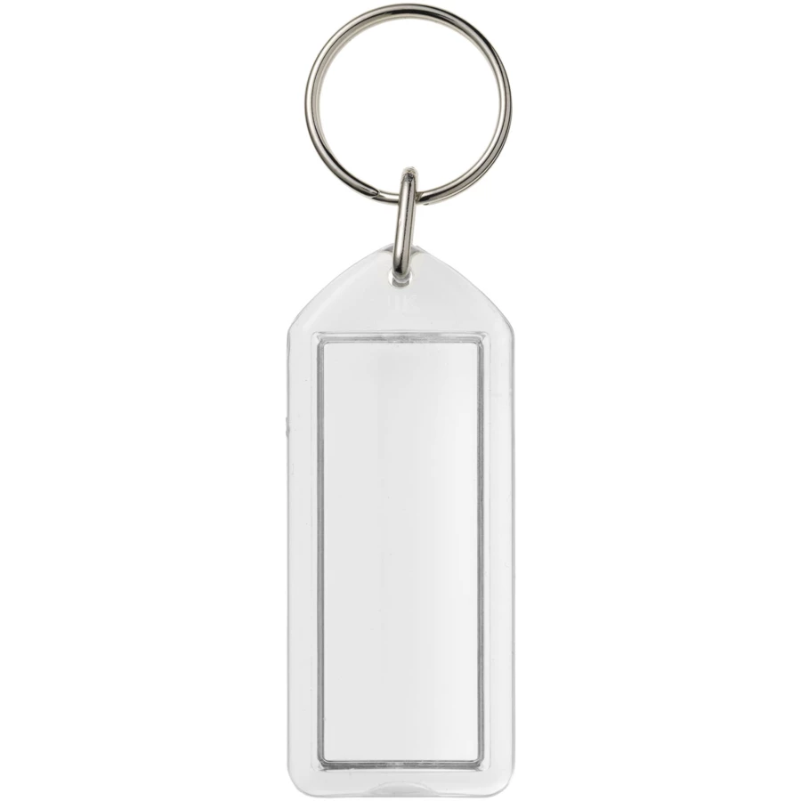 Prostokątny breloczek F1 z metalowym pękiem na klucze. Ten brelok można otwierać za pomocą monety. Metalowy pierścień cechuje płaski profil, który idealnie nadaje się do wysyłek. Wymiary wkładu do druku: 5,0 cm x 2,0 cm.