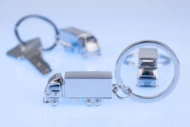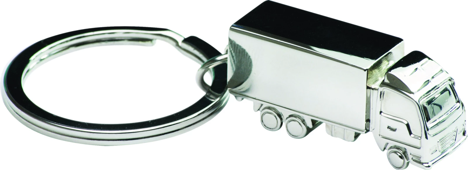 Brelok - miniaturka TIRa, o unikalnym trójwymiarowym kształcie wyjątkowo wiernie odzwierciedla detale prawdziwych ciężarówek. Brelok wykonany z chromowanego metalu, pakowany w elegancki czarny kartonik. Logo wygrawerujemy na plandece naczepy.