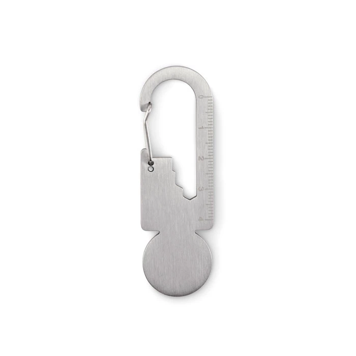 Żeton do wózka z brelokiem ze stali nierdzewnej z recyklingu (90% stali nierdzewnej z recyklingu i 10% stali nierdzewnej) z wielofunkcyjnym narzędziem zawierającym otwieracz do butelek, linijkę i klucz sześciokątny 5,5mm, 7mm, 8mm.