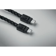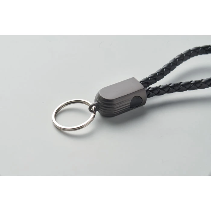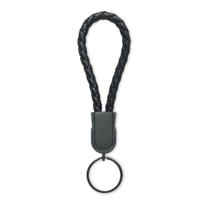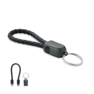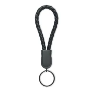 Pierścień do kluczy z kablem ładującym 60 W typu C do typu C z PU z plecionym detalem ze stopu cynku.