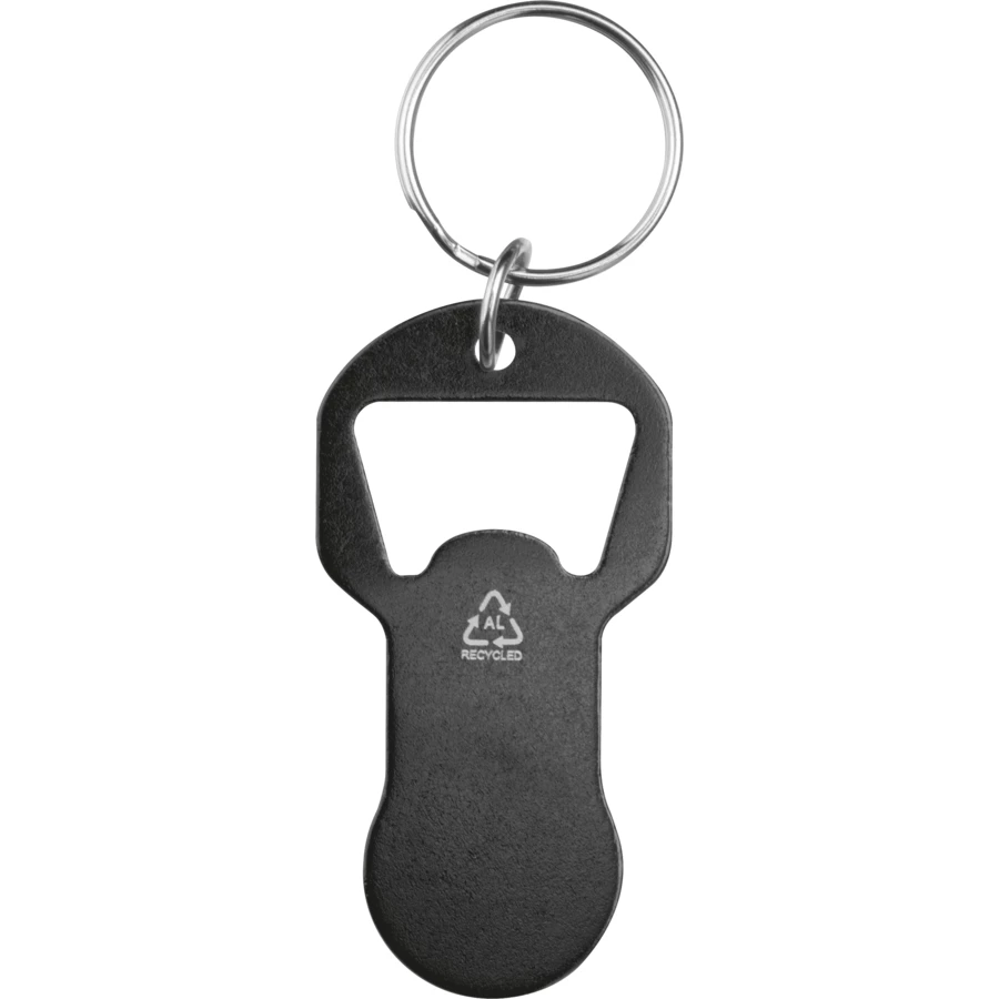 Brelok z otwieraczem do butelek i żetonem do wózka z aluminium z recyklingu OLIWIER - czarny - (NMC-95445-03)