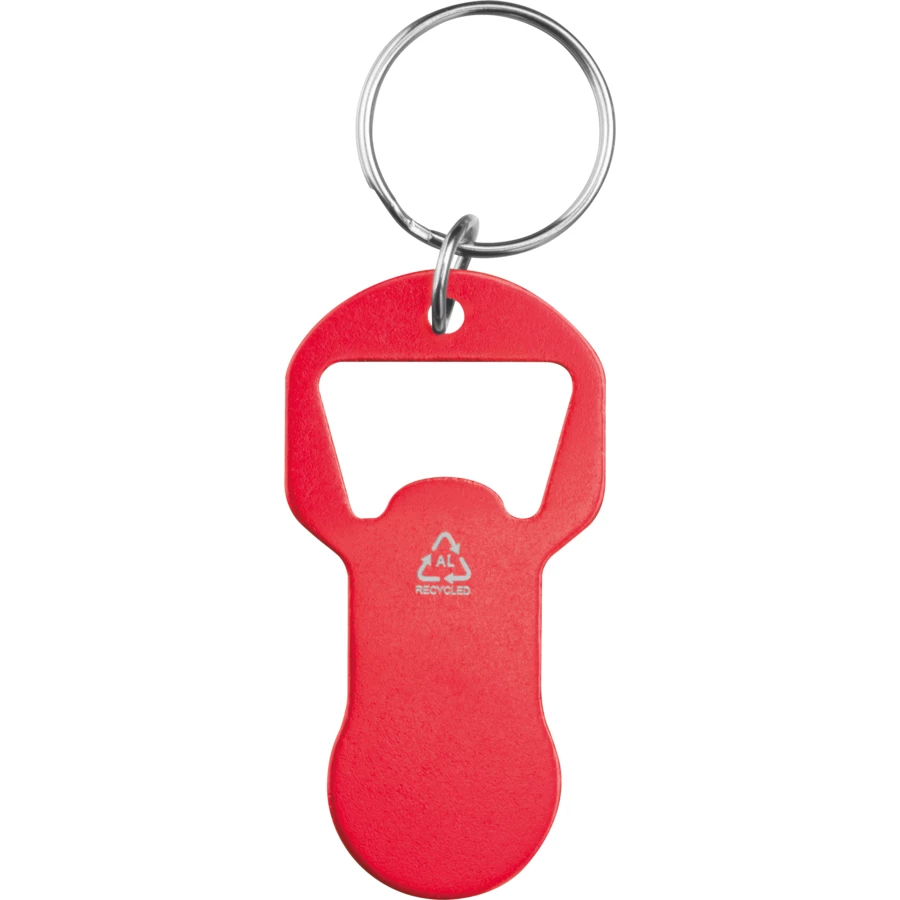 Brelok z otwieraczem do butelek i żetonem do wózka z aluminium z recyklingu OLIWIER - czerwony - (NMC-95445-05)