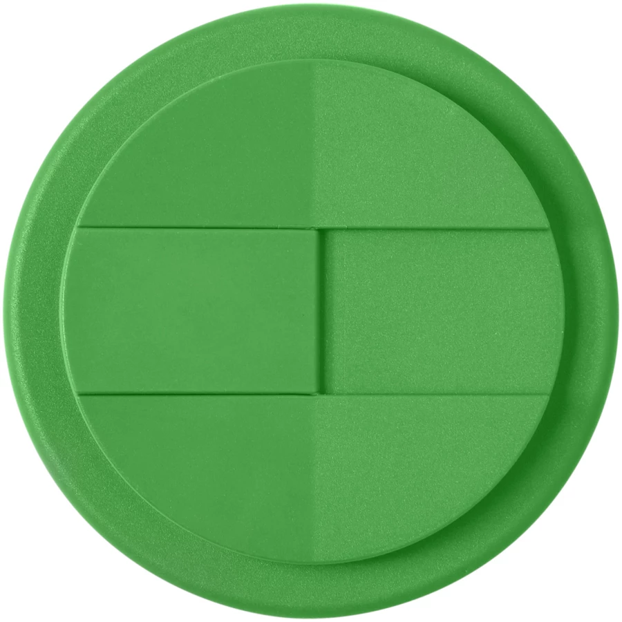 Izolowany kubek o podwójnej ściance ze szczelną zakręcaną pokrywą i pełnokolorowym wzorem na całej powierzchni wtopionym w produkt. Wykonany w 70% z materiału pochodzącego z recyklingu (kubek z materiałów z recyklingu i czarna wkładka) i ma standardową pokrywkę z tworzywa PP. Kubek w pełni nadaje się do recyklingu i można go używać w zmywarce i kuchence mikrofalowej. Pojemność wynosi 350 ml i nie zawiera BPA. Zapakowana w torbę, którą można kompostować w domu. Wyprodukowano w Wielkiej Brytanii.