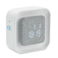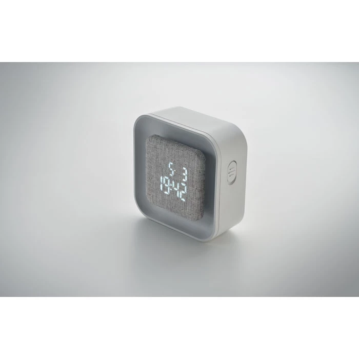 Budzik LED z tworzywa ABS i RPET pochodzącego z recyklingu. Wyświetlany tylko rok kalendarzowy tylko w trybie alarmu. Regulowane oświetlenie. Zasilanie bateryjne.