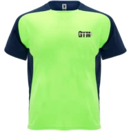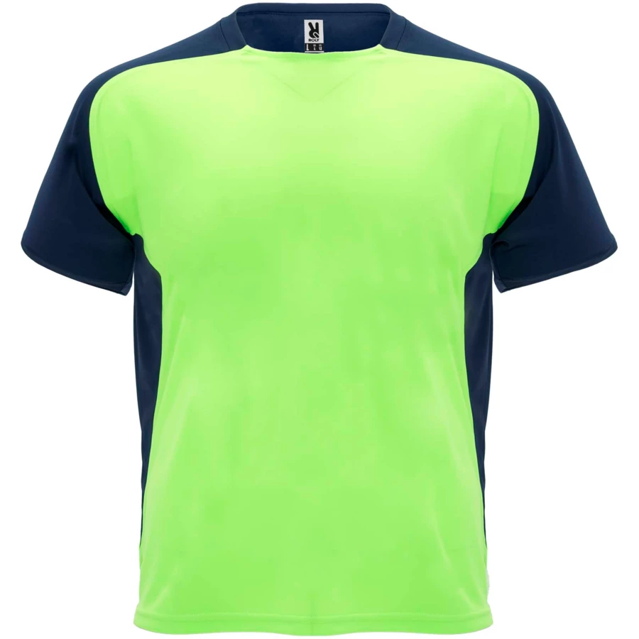 Techniczny i oddychający materiał. Okrągły dekolt z pasującymi krytymi szwami. Raglanowe rękawy i kontrastowe panele boczne. Usuwalna etykieta.