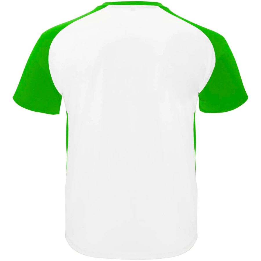Techniczny i oddychający materiał. Okrągły dekolt z pasującymi krytymi szwami. Raglanowe rękawy i kontrastowe panele boczne. Usuwalna etykieta.