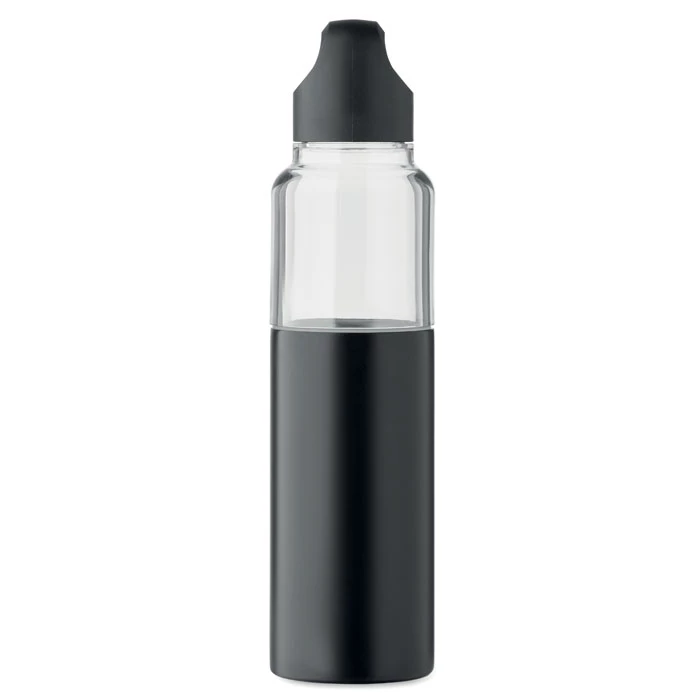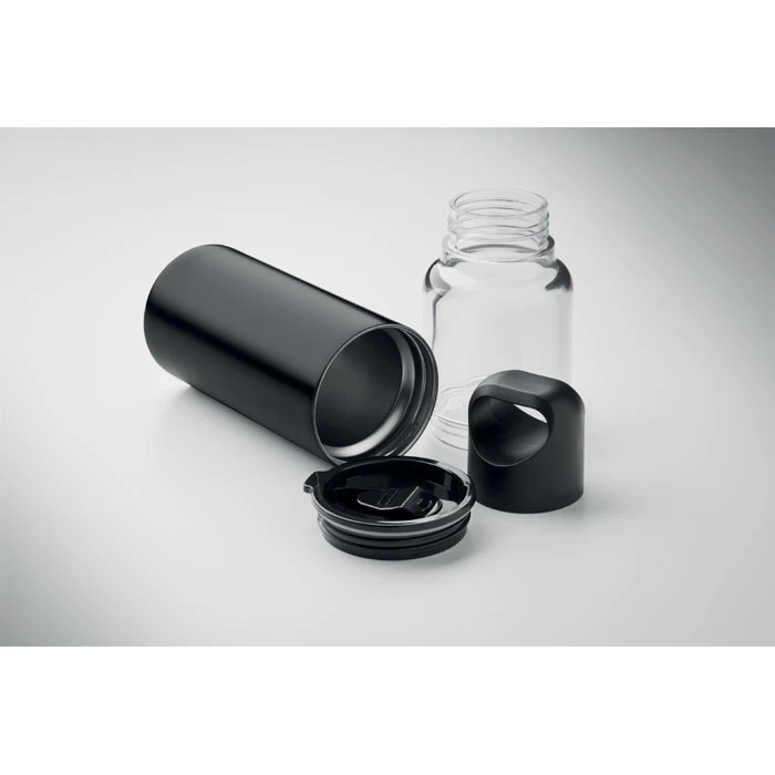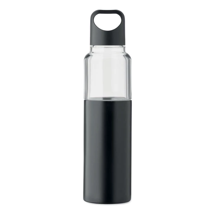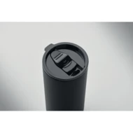 Butelka 2 w 1 do wielokrotnego napełniania z Tritanu i 2 ściany z recyklingowanej stali nierdzewnej (90% z recyklingu i 10% stal nierdzewna). 2 pokrywki z PP. Pojemność całkowita 610 ml, kubek 350 ml.