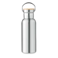 Termos ze stali nierdzewnej z podwójnymi ściankami, 500 ml. Pokrywka z bambusa, z uchwytem. Znakowanie sublimacją jest możliwe tylko na białych produktach. Szczelna. Bambus jest produktem naturalnym, dlatego mogą wystąpić nieznaczne różnice w kolorze, wzorze i rozmiarze.