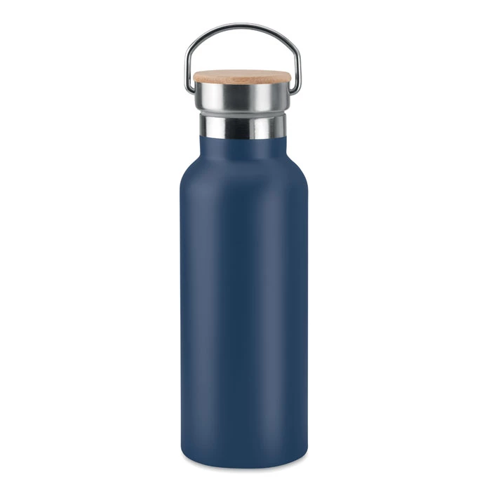 Termos ze stali nierdzewnej z podwójnymi ściankami, 500 ml. Pokrywka z bambusa, z uchwytem. Znakowanie sublimacją jest możliwe tylko na białych produktach. Szczelna. Bambus jest produktem naturalnym, dlatego mogą wystąpić nieznaczne różnice w kolorze, wzorze i rozmiarze.