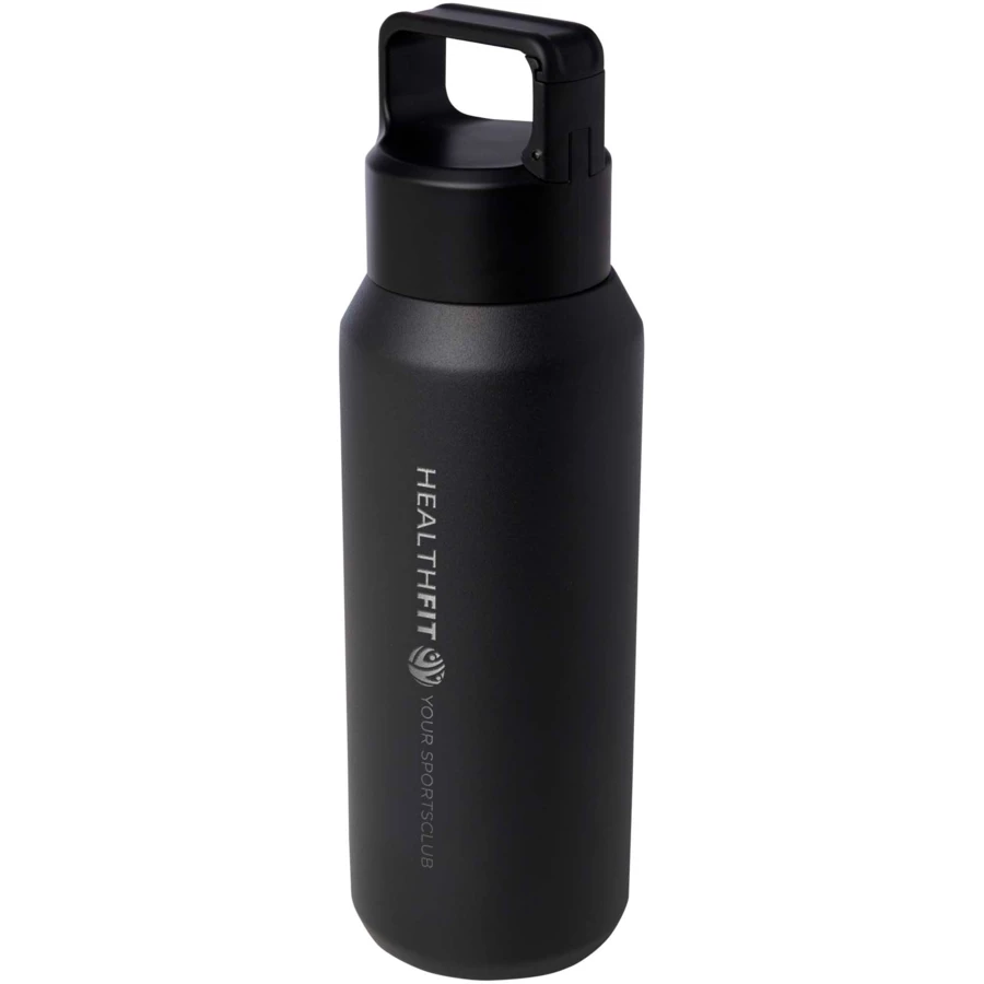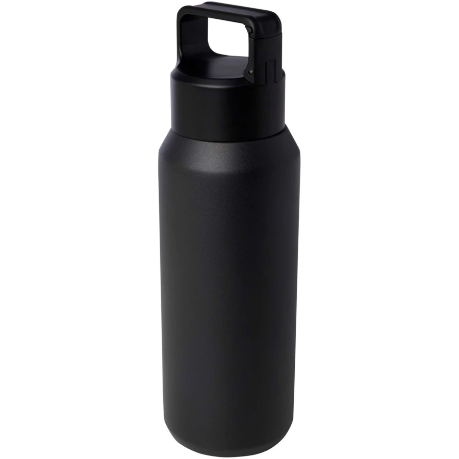 Butelka na wodę z podwójną ścianką ze stali nierdzewnej z funkcją izolacji próżniowej, wykonana z miedzi, z certyfikatem RCS, wyposażona w zakrętkę z wbudowanym karabińczykiem, dzięki czemu można ją łatwo przymocować do torby lub paska. Nadaje się również do napojów gazowanych. Zapakowane w pudełko upominkowe wykonane z kartonu z recyklingu. Pojemność: 600 ml.