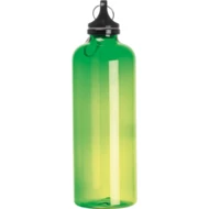 Bidon z karabińczykiem przymocowanym do zakrętki, wykonany z kolorowego, półprzezroczystego materiału PET. Pojemność 600 ml.