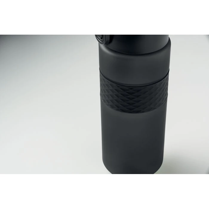 Butelka do picia wykonana z RPET z silikonowym uchwytem, pokrywką z PP i bezpiecznym zamknięciem. Zawiera zintegrowaną słomkę. Nie przecieka. Pojemność: 700 ml.