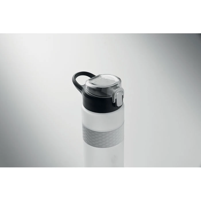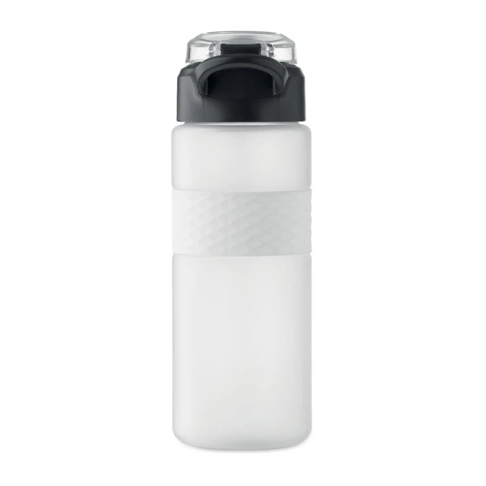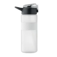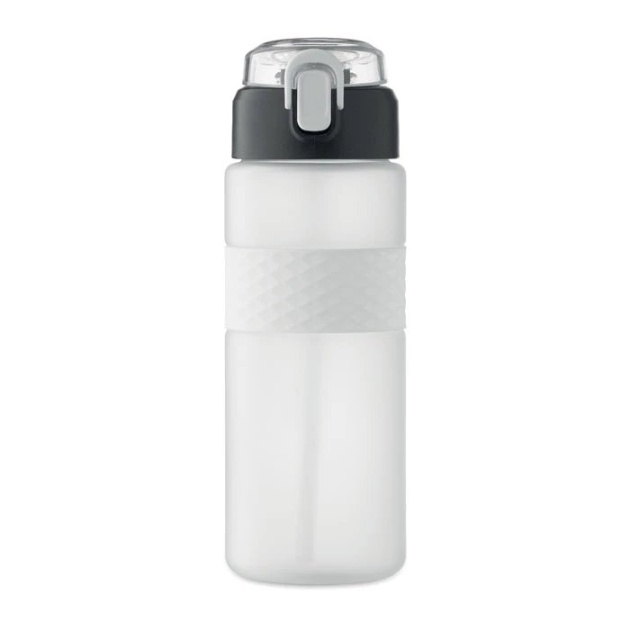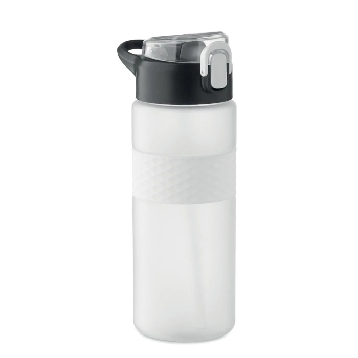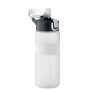 Butelka do picia wykonana z RPET z silikonowym uchwytem, pokrywką z PP i bezpiecznym zamknięciem. Zawiera zintegrowaną słomkę. Nie przecieka. Pojemność: 700 ml.
