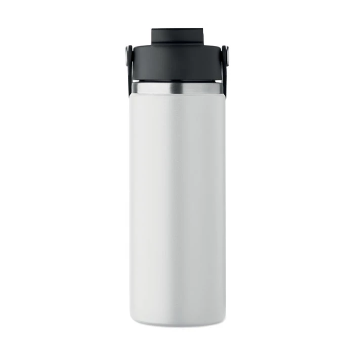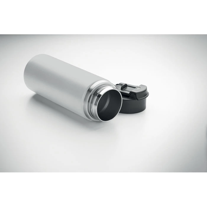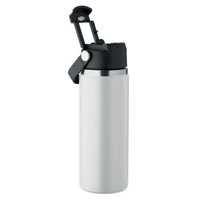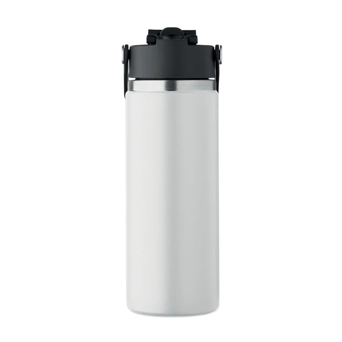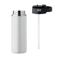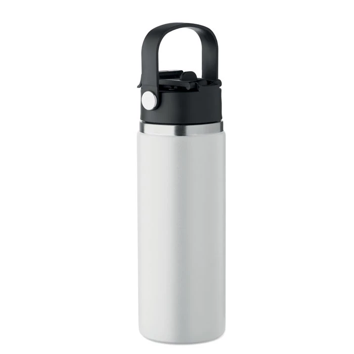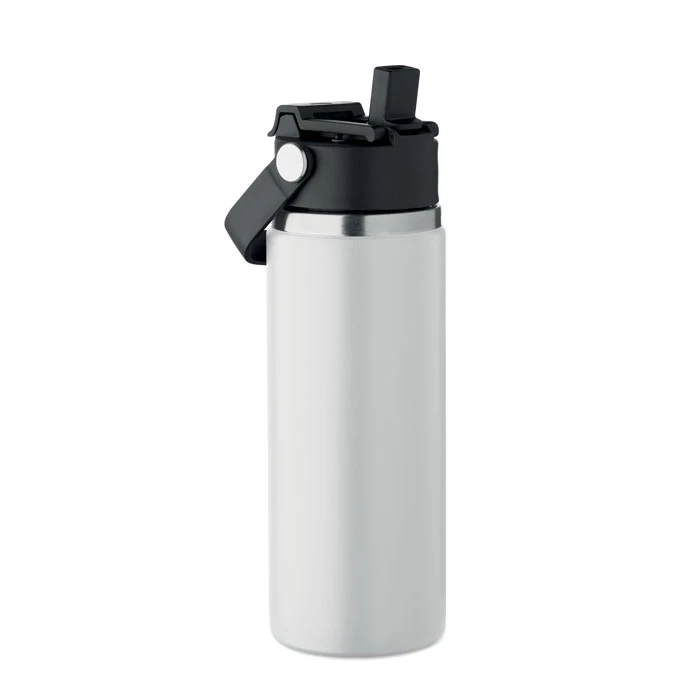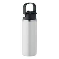 Butelka z podwójnymi ścianami z recyklingowanej stali nierdzewnej (90% z recyklingu stali nierdzewnej i 10% ze stali nierdzewnej) ze słomką i pokrywką z uchwytem. Nie przecieka. Pojemność: 500 ml.