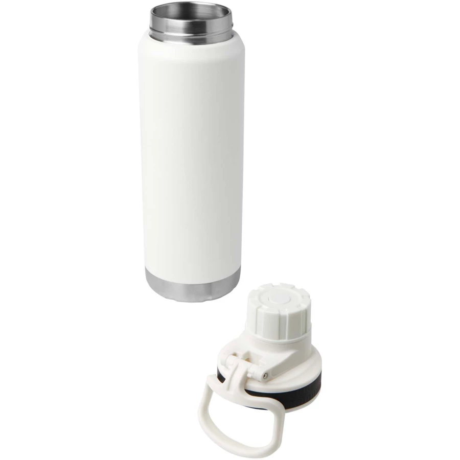 Butelka na wodę z podwójną ścianką ze stali nierdzewnej, izolowana próżniowo i miedziana, z certyfikatem RCS i szczelną zakrętką. Posiada szeroki otwór ułatwiający napełnianie i czyszczenie oraz wygodną rączkę do przenoszenia połączoną z pokrywką. Odpowiednia do gazowanych napojów. Trwała powłoka proszkowa na zewnątrz. Zapakowane w pudełko upominkowe wykonane z kartonu z recyklingu. Pojemność: 700 ml.