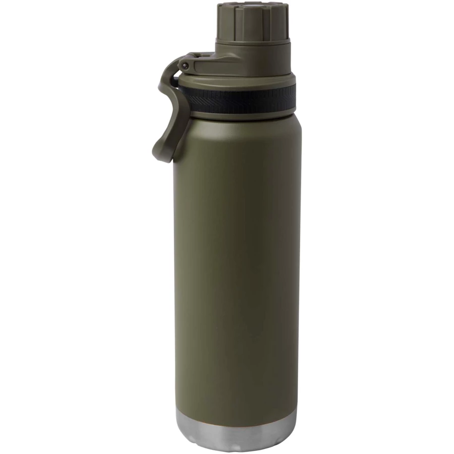 Butelka na wodę z podwójną ścianką ze stali nierdzewnej, izolowana próżniowo i miedziana, z certyfikatem RCS i szczelną zakrętką. Posiada szeroki otwór ułatwiający napełnianie i czyszczenie oraz wygodną rączkę do przenoszenia połączoną z pokrywką. Odpowiednia do gazowanych napojów. Trwała powłoka proszkowa na zewnątrz. Zapakowane w pudełko upominkowe wykonane z kartonu z recyklingu. Pojemność: 700 ml.