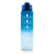 Butelka motywacyjna 1000 ml Air Gifts, skala ml z jednej strony i podziałka motywacyjna z drugiej strony, zamknięcie z blokadą, pasek na rękę (pakowany oddzielnie), gumowane wykończenie, przeznaczona wyłącznie do zimnych i niegazowanych napojów