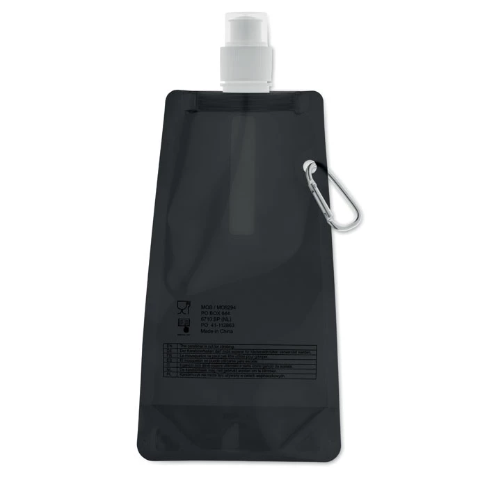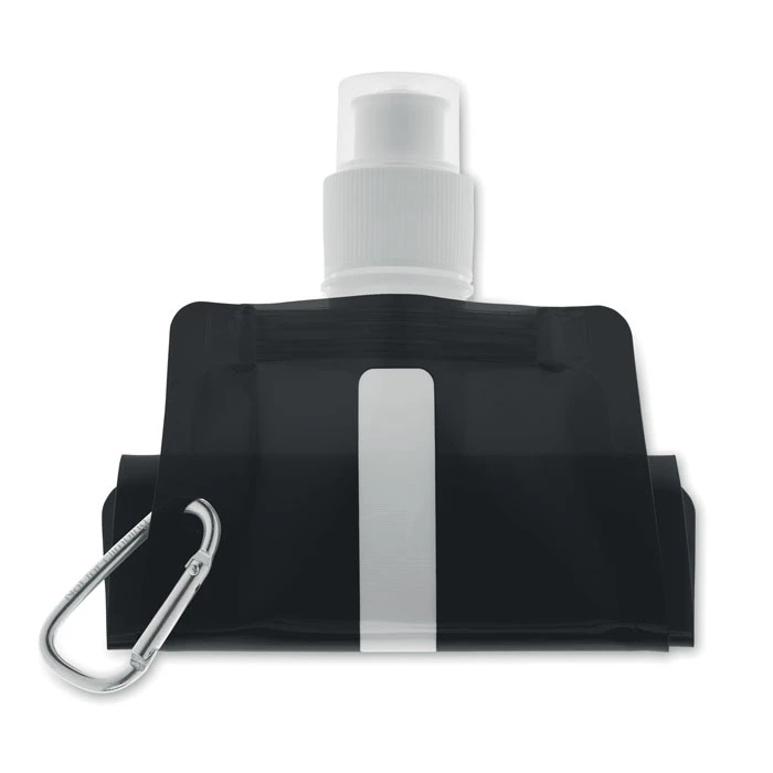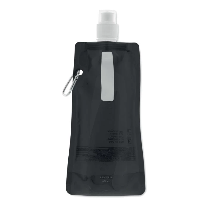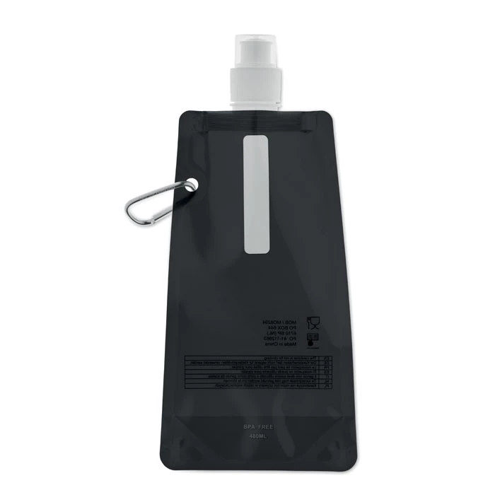 Składany plastikowy pojemnik na wodę z PET (nie zawiera BPA), z aluminiowym karabinkiem. Pojemność 480ml. Szczelna.