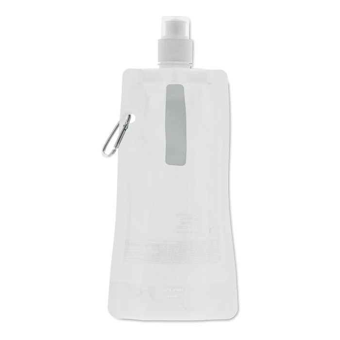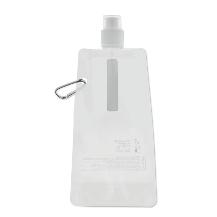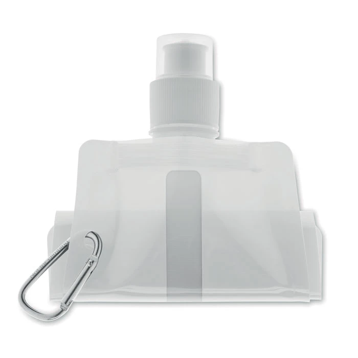 Składany plastikowy pojemnik na wodę z PET (nie zawiera BPA), z aluminiowym karabinkiem. Pojemność 480ml. Szczelna.