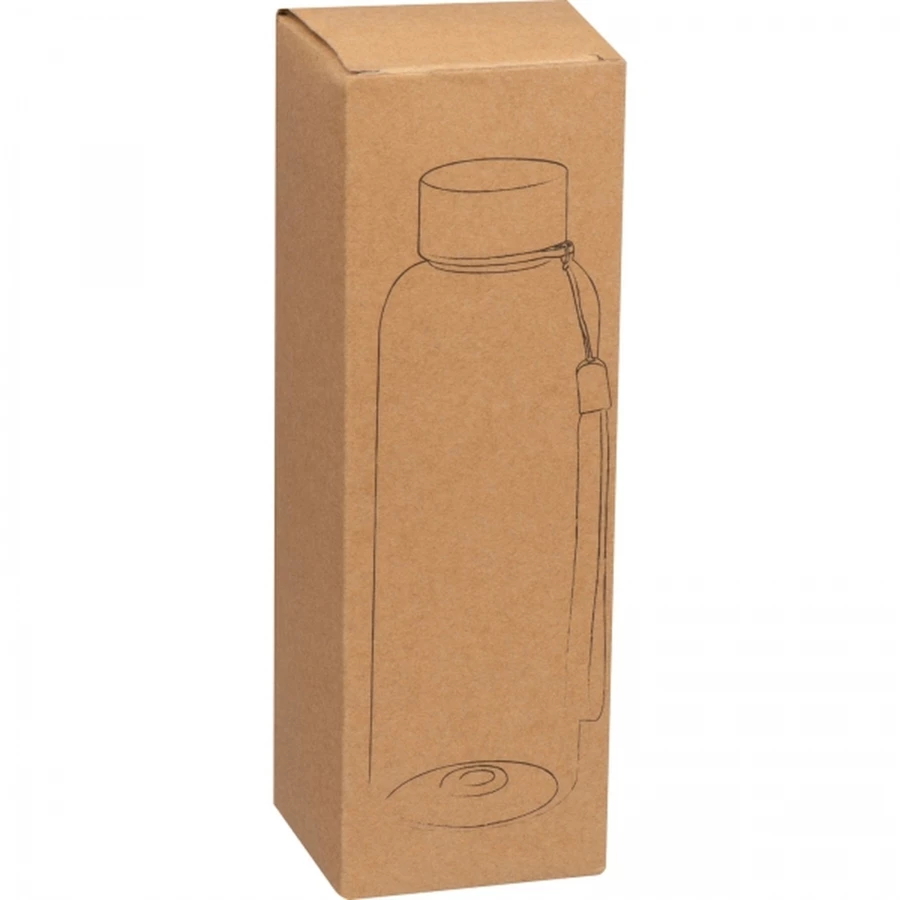 Butelka z wytrzymałego materiału PET, posiada metalową nakrętkę z przymocowanym do niej sznureczkiem.