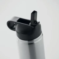 Izolowana próżniowo butelka z podwójnymi ściankami ze stali nierdzewnej z recyklingu (90% ze stali nierdzewnej z recyklingu i 10% ze stali nierdzewnej) z pokrywką z PP i wbudowaną słomką. Szczelna. Pojemność: 500 ml.