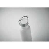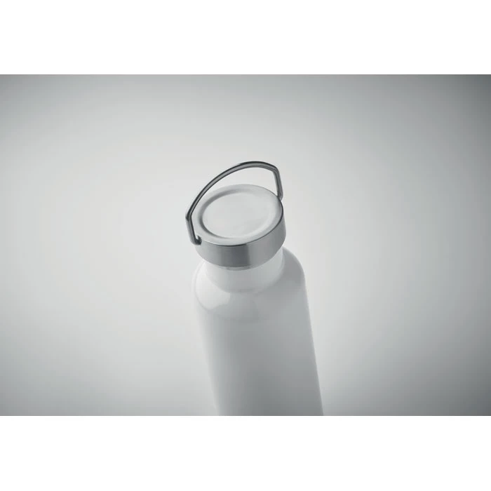 Dwuścienna, izolowana próżniowo butelka ze stali nierdzewnej z recyklingu (90% recyklingowanej stali nierdzewnej i 10% stali nierdzewnej) z zakrętką z uchwytem. Pojemność: 500 ml.