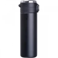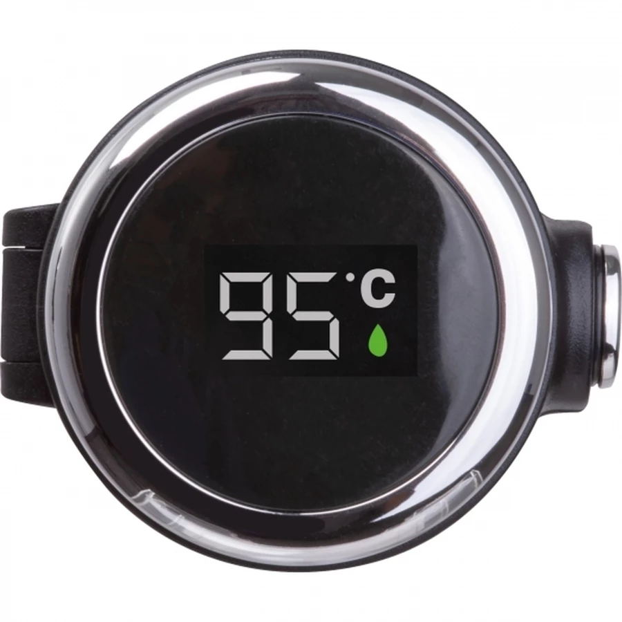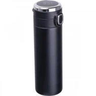Próżniowo izolowana butelka ze stali nierdzewnej z wyświetlaczem temperatury w pokrywce i zabezpieczeniem przed otwarciem. Maksymalny wyświetlacz temperatury: 99°C.