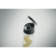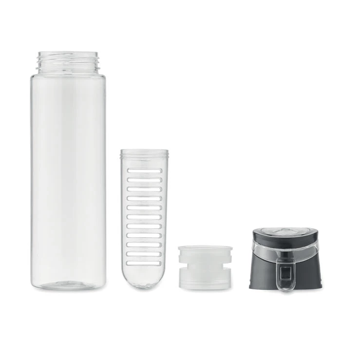 Butelka na wodę z RPET z wyjmowanym sitkiem do owoców, uchwytem do przenoszenia i szczelną zakrętką. Pojemność 500 ml.