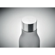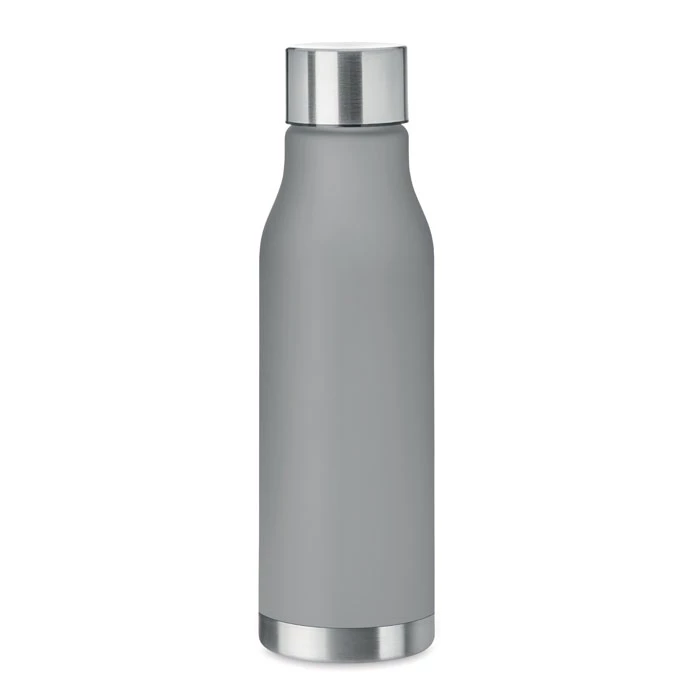 Butelka z RPET z gumowanym wykończeniem, zakrętka ze stali nierdzewnej z silikonowym pierścieniem. Bez BPA. Szczelna. Pojemność: 600 ml. Nie nadaje się do napojów gazowanych.