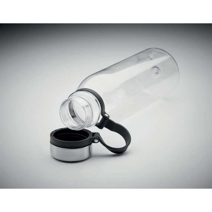 Dwuścienna butelka z RPET z silikonowym uchwytem do łatwego przenoszenia oraz zakrętką ze stali nierdzewnej. Bez BPA. Szczelna. Pojemność: 780 ml. Nie nadaje się do napojów gazowanych.