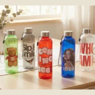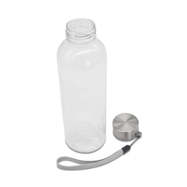 Szczelna butelka wykonana z RPET, z paskiem na nadgarstek. Pojemność 500 ml.