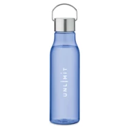 Butelka do picia z RPET, wolna od BPA, z zakrętką ze stali nierdzewnej z uchwytem. Szczelna. Pojemność: 600 ml.
