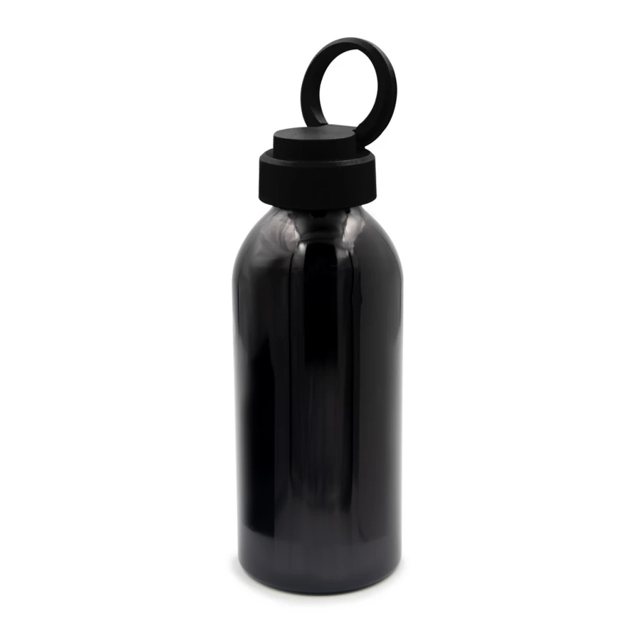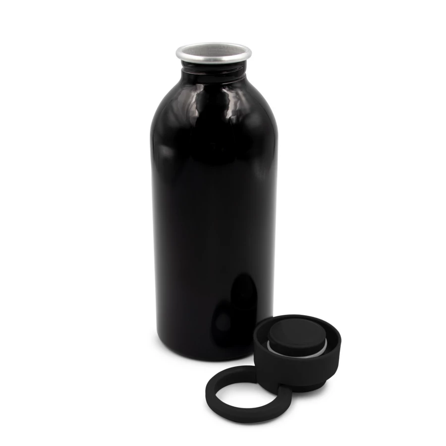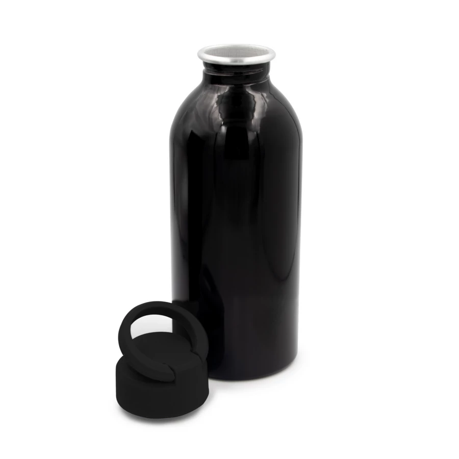 Sportowa butelka 585 ml, posiada plastikową zakrętkę ze składanym uchwytem ułatwiającym noszenie, zalecana wyłącznie do zimnej wody, produkt wykonany z aluminium