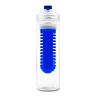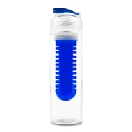 Butelka sportowa 650 ml, posiada pojemnik na lód lub owoce umożliwiający nadanie wodzie smaku według własnych preferencji, zakrętka z kolorowym zamknięciem, butelka przeznaczona wyłącznie do zimnych i niegazowanych napojów, produkt wykonany z plastiku