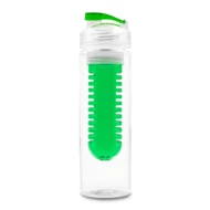 Butelka sportowa 650 ml, posiada pojemnik na lód lub owoce umożliwiający nadanie wodzie smaku według własnych preferencji, zakrętka z kolorowym zamknięciem, butelka przeznaczona wyłącznie do zimnych i niegazowanych napojów, produkt wykonany z plastiku