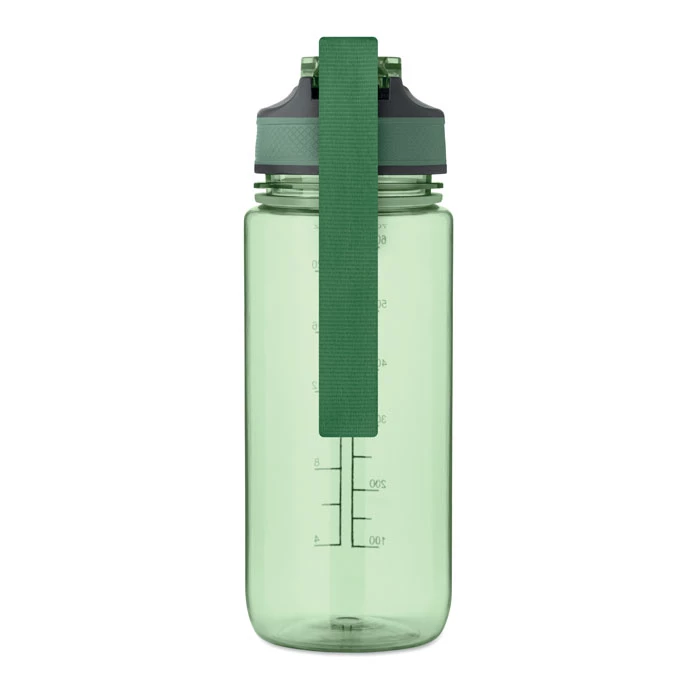 Motywacyjna butelka z RPET ze zintegrowaną słomką, miękkim silikonowym ustnikiem, otwieraną jedną ręką pokrywką, blokadą bezpieczeństwa. Z satynowym paskiem z RPET. Pojemność 700 ml. Nie przecieka.