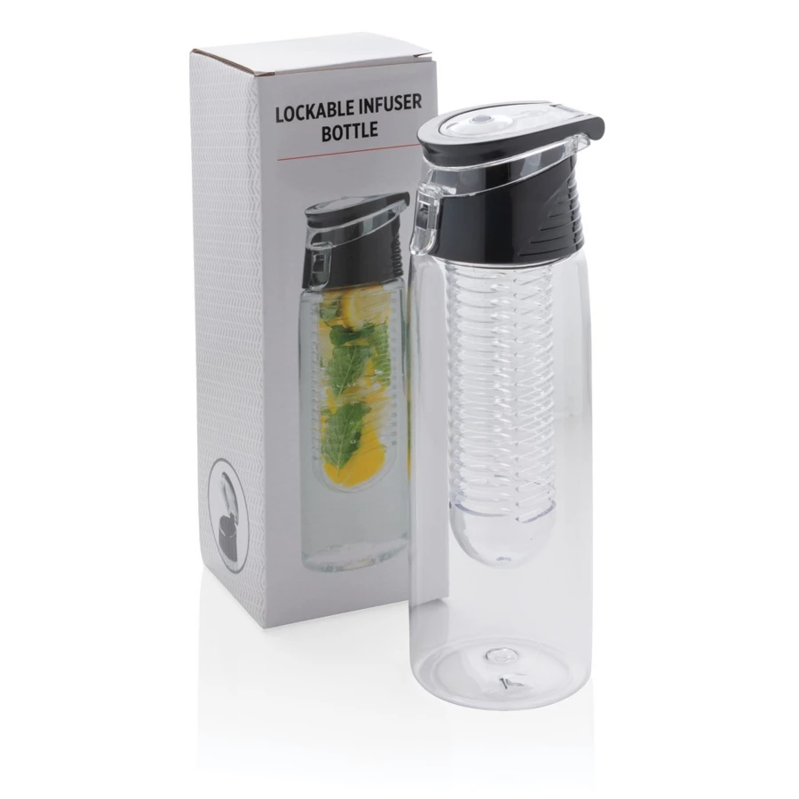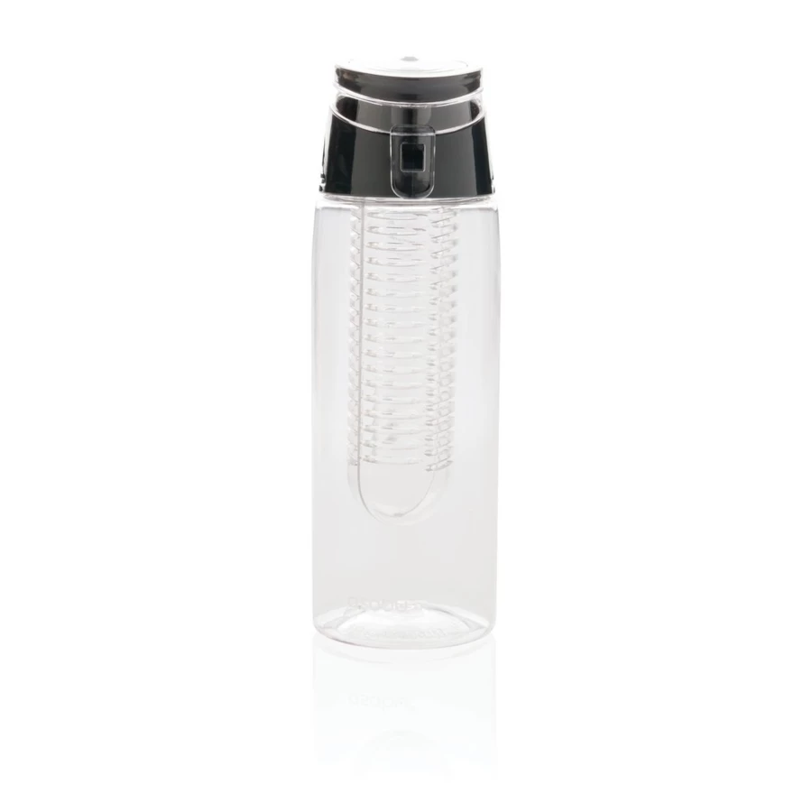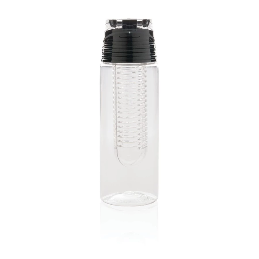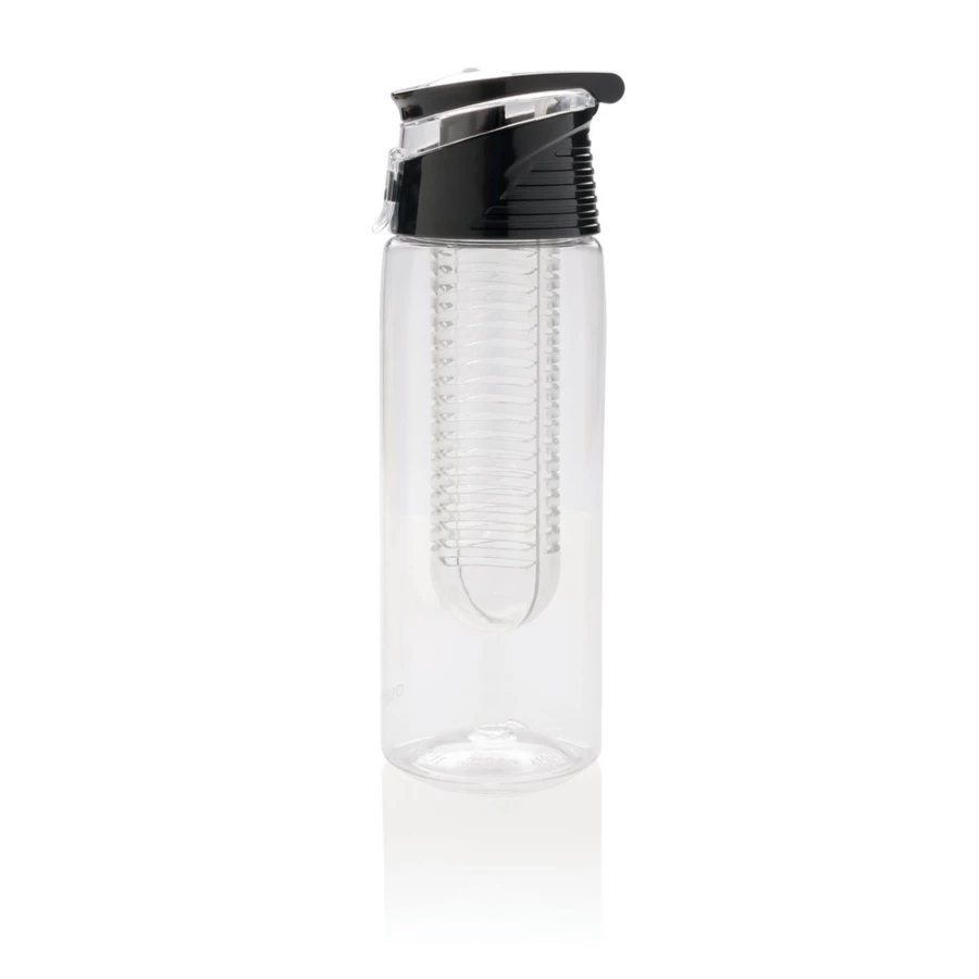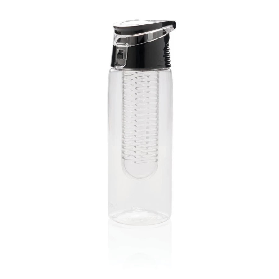 Butelka sportowa 700 ml z pojemnikiem na lód i owoce, szczelne wieczko wykonane z ABS z blokadą i uchwytem, wykonana z odpornego na zadrapania i wytrzymałego Tritanu, nie wymaga obsługi oburącz, ślad węglowy produktu: 1,37 kg CO2