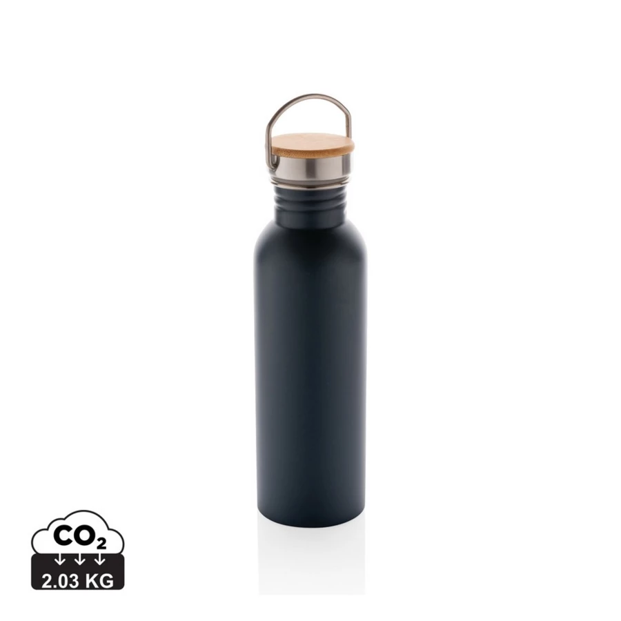 Butelka sportowa 700 ml, wykonana ze stali nierdzewnej, zakrętka z bambusa i stali nierdzewnej, z uchwytem, wyłącznie mycie ręczne, ślad węglowy produktu: 2,03 kg CO2