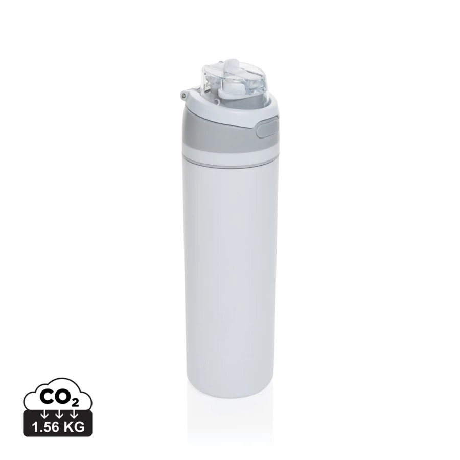 Butelka sportowa 700 ml, posiada wbudowaną słomkę, produkt wykonany ze stali pochodzącej z recyklingu z certyfikatem RCS, zapakowana w pudełko upominkowe FSC