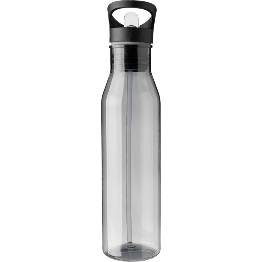 Butelka sportowa 730 ml ze składanym ustnikiem i słomką do wygodnego picia napoju w środku, uchwyt ułatwiający noszenie połączony z zakrętką, polecana do zimnych i niegazowanych napojów, produkt wykonany z RPET