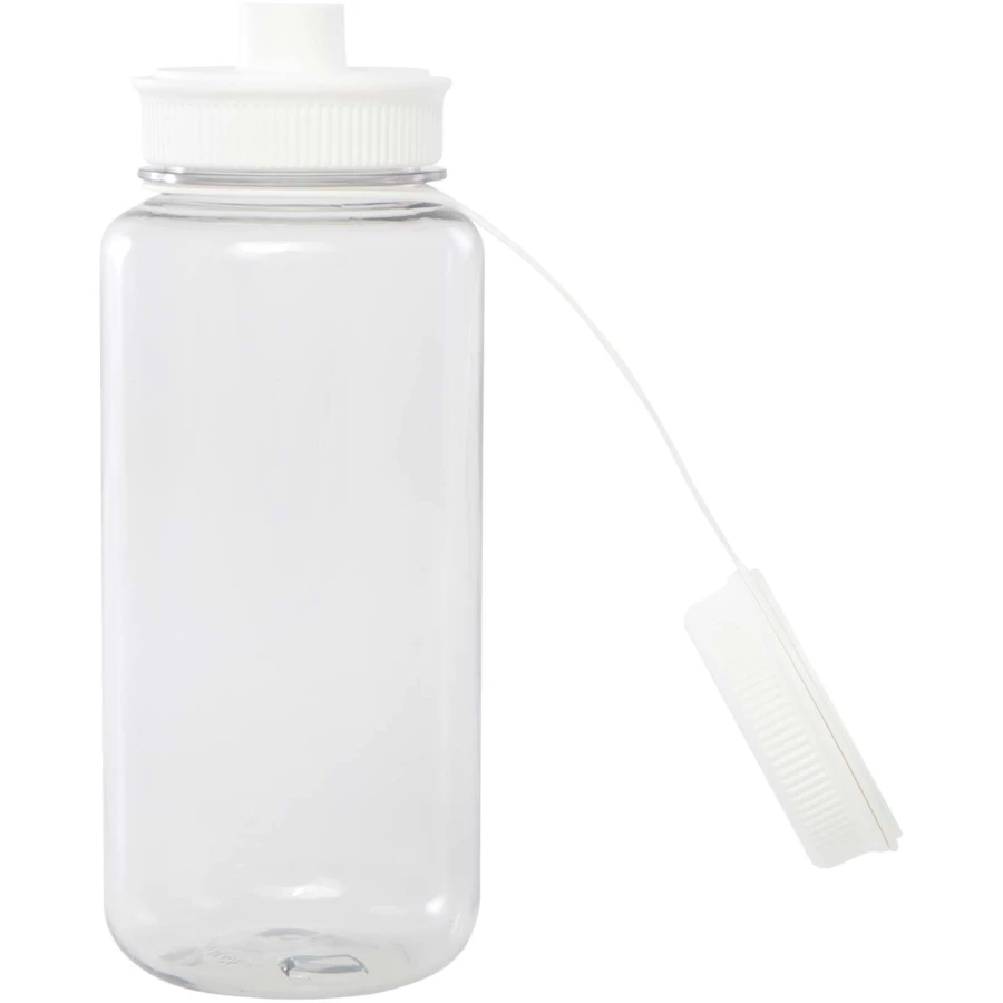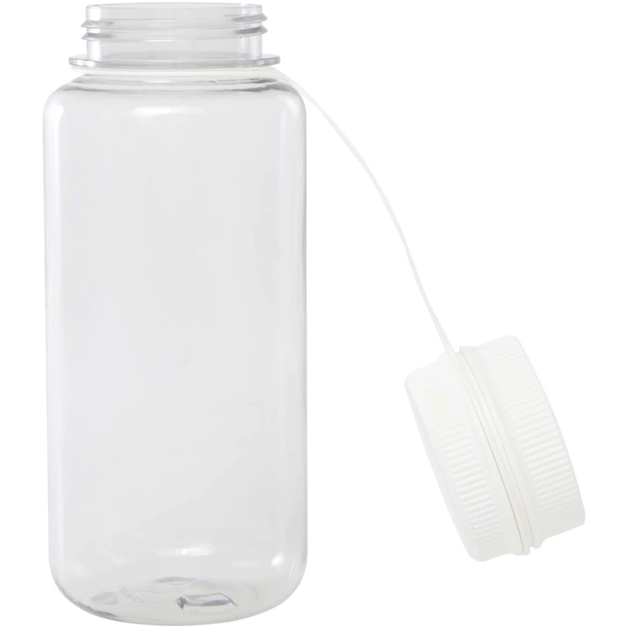 Butelka sportowa z pojedynczą ścianką wykonana z certyfikowanego przez RCS tworzywa RPET, wyposażona w zakrętkę i szczelną przykrywkę z wygodnym uchwytem do przenoszenia zintegrowanym z zakrętką. Otwierana z dwóch stron konstrukcja ułatwiająca czyszczenie i napełnianie. Zgodność ze standardami recyklingu PET zatwierdzonymi przez EFSA (Europejski Urząd ds. Bezpieczeństwa Żywności). Pojemność: 900 ml.