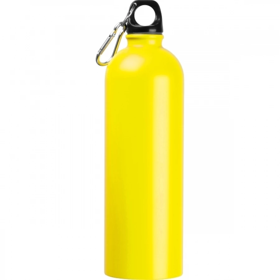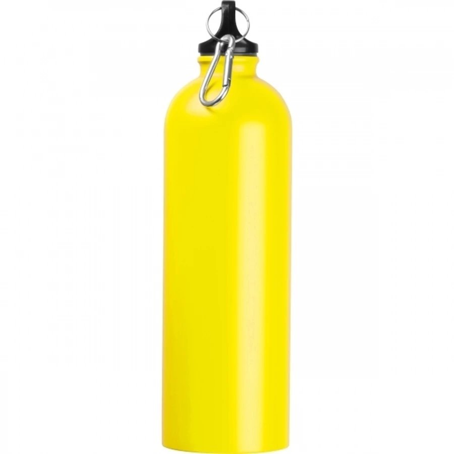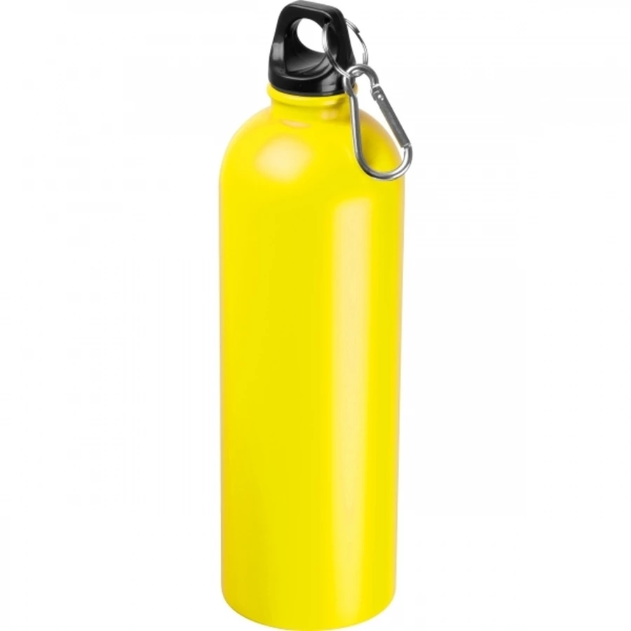 Lekka, stalowa butelka o pojemności 750 ml, z zakrętką, do której przymocowany został karabińczyk, dzięki czemu butelkę można wygodnie przyczepić np. do plecaka.