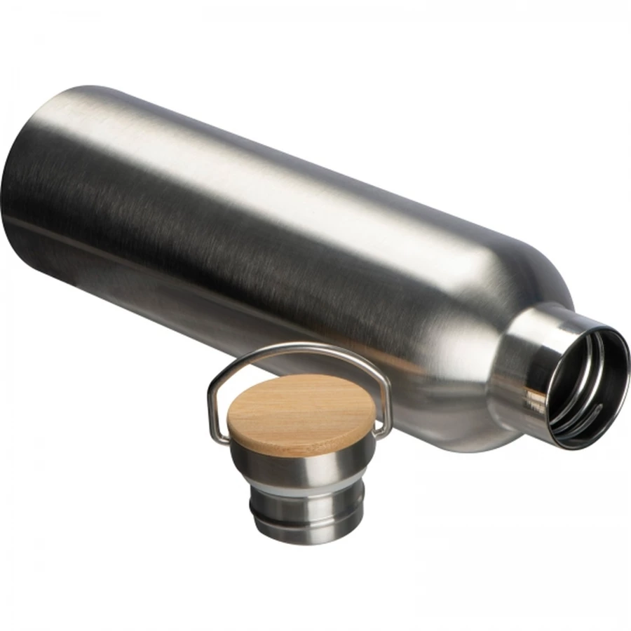Butelka ze stali nierdzewnej, z podwójnymi ściankami i zamknięciem z bambusowym wieczkiem i rączką do przenoszenia. Pojemność 1000 ml.