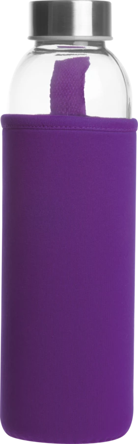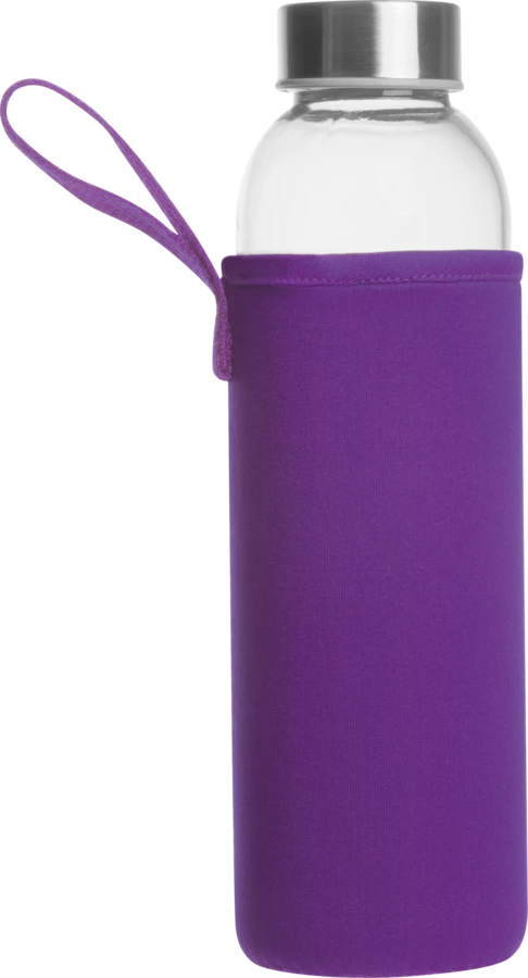 Szklana butelka z metalową zakrętką, w etui z neoprenu, o pojemności 500 ml. Dostępna w bogatej gamie kolorystycznej.