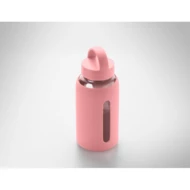 Butelka ze szkła borokrzemowego z silikonowym pokrowcem i pokrywką z PP z uchwytem. Pojemność: 600 ml