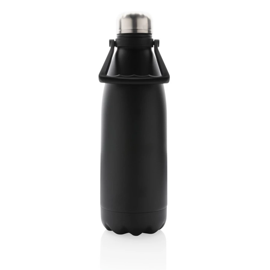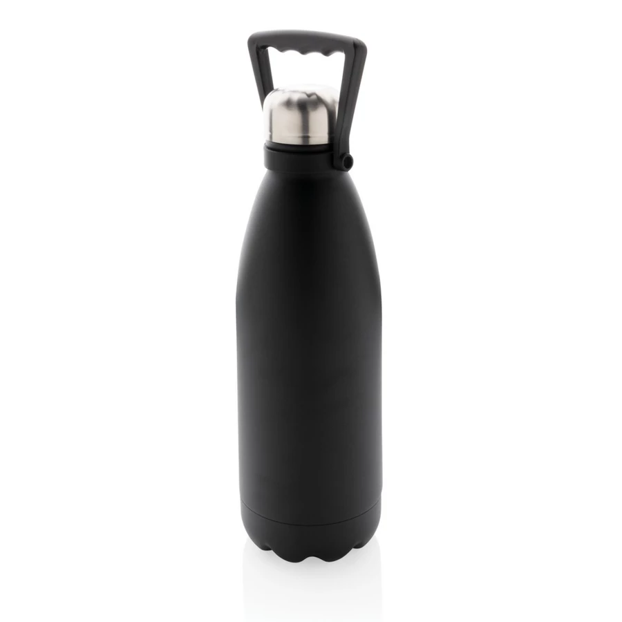 Butelka termiczna 1500 ml z uchwytem, proszkowa powłoka, wykonana ze stali nierdzewnej pochodzącej z recyklingu, całkowita zawartość materiałów z recyklingu obliczona na podstawie wagi całkowitej przedmiotu: 88%, podwójne ścianki z próżnią pomiędzy, w opakowaniu z certyfikatem FSC®, utrzymuje temperaturę napojów gorących do 20 godzin oraz zimnych do 15 godzin